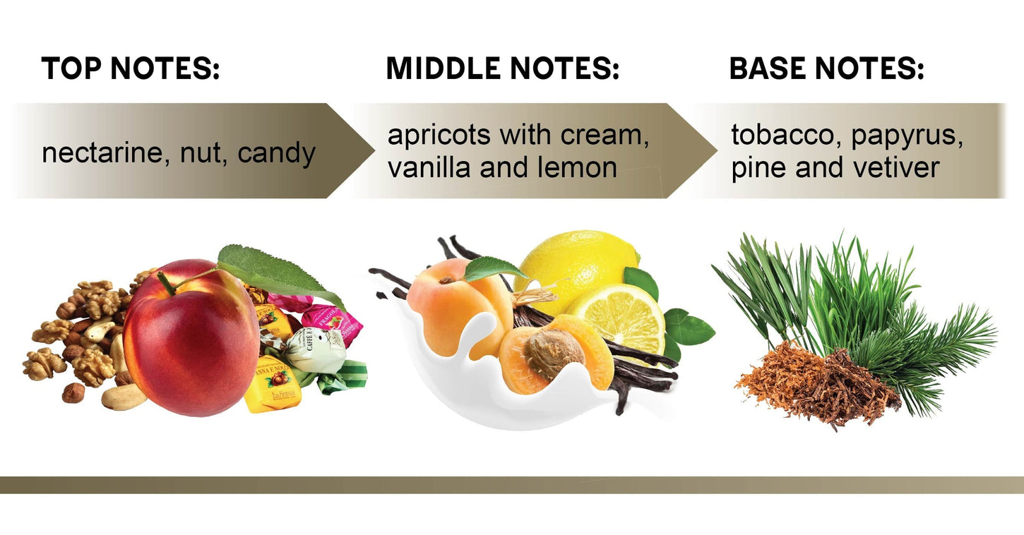 The top notes open with a bright, sweet harmony of juicy nectarine and sugary candies, instantly wrapping you in an aura of joy and delightful anticipation. At its heart, the fragrance reveals creamy apricot accords, enriched with soft vanilla and refreshing citrus hints of lemon β an elegant blend that forms a gentle and warm core.