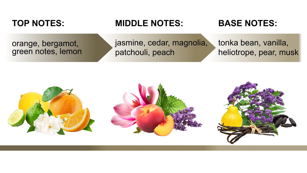 As the scent evolves, it flows into the heart notes where a harmonious blend of jasmine, cedar, magnolia, patchouli, peach, and creamy eclair takes center stage. This heart is a complex array of floral and creamy notes, where the heady aroma of jasmine and the woody scent of cedar are softened by the delicate magnolia and earthy patchouli. The addition of peach and creamy eclair adds a layer of indulgence, giving the fragrance a rich, sweet depth that's irresistible.