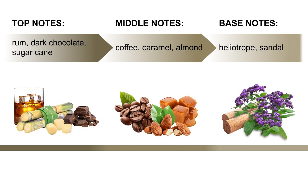 As El Diablo develops, its heart reveals a comforting yet complex character. Creamy caramel melds with the rich bitterness of coffee, creating an aroma that is both soothing and invigorating. A hint of almond adds a nutty, subtly sweet layer, enhancing the gourmand aspect. This phase is a delightful dance of warmth and sensuality, balancing the initial richness with a softer embrace.