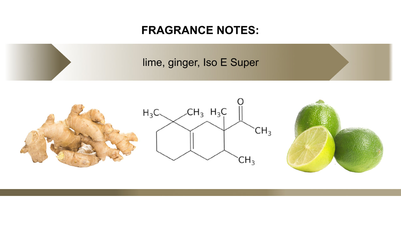 Lime Crush opens with the zesty and spicy aroma of ginger. This top note sets an energetic and lively tone, providing a spicy kick that awakens the senses. Gingerβs invigorating presence is both refreshing and warm, creating an opening that is both tantalizing and comforting.