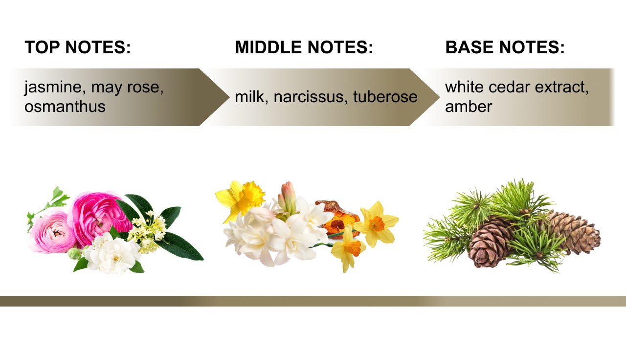 The heart of Mad Jam reveals a charming mix of milk, narcissus, tuberose, and a hint of peach jam. This combination offers a fascinating contrast between creamy and floral scents, with just the right touch of sweetness to balance everything out. The milk brings a soft, comforting vibe, while the narcissus and tuberose give the fragrance a rich, captivating floral depth. The addition of peach jam adds a playful, gourmand twist, making the heart of this fragrance even more delightful.